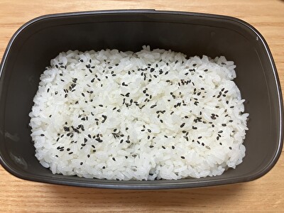 まずは白米を敷き詰めます。